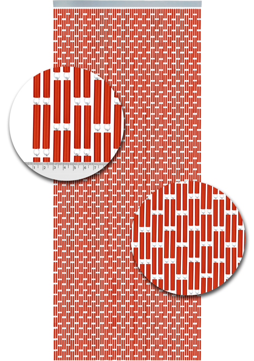 Dit vliegengordijn in de kleur oranje is ook verkrijgbaar met rechte banen.